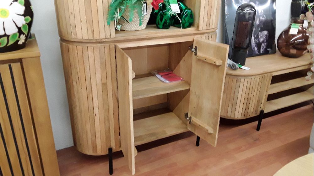 MEUBLE BIBLIOTEQUE BOIS CANNELE DEUX PARTIES