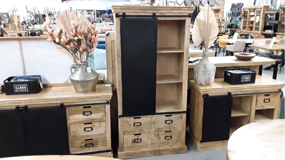 BIBLIOTHEQUE SLIDER MANGUIER 1 PORTE COULISSANTE RT 4 TIROIRS