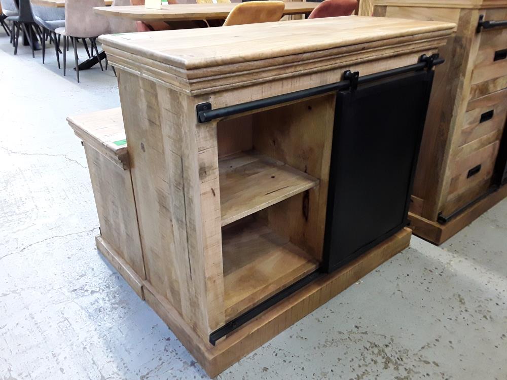 MEUBLE D APPOINT SLIDER MANGUIER 100 CM PORTE COULISSANTE ET 3 TIROIRS
