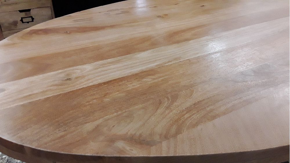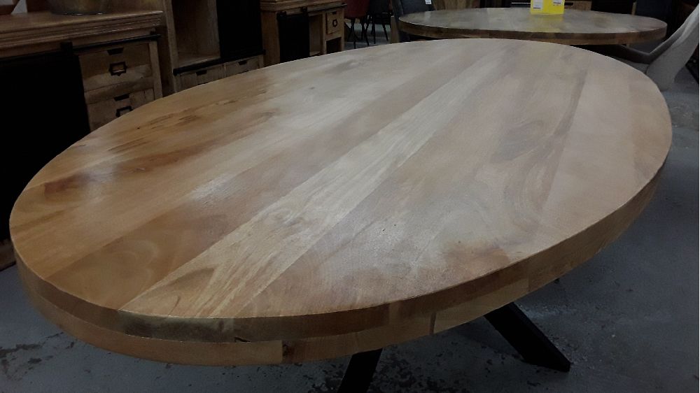 TABLE OVALE 220 MANGUIER MASSIF ET PIED CENTAL METAL