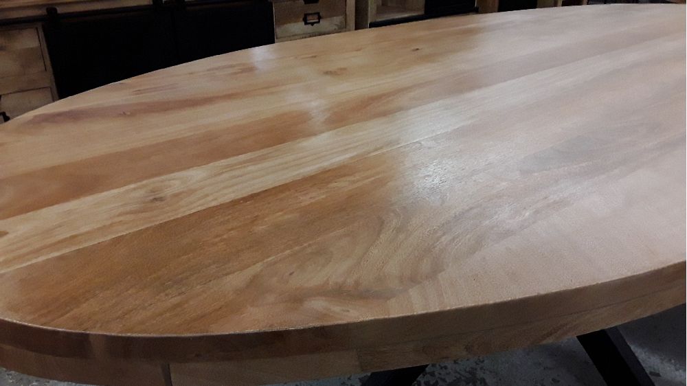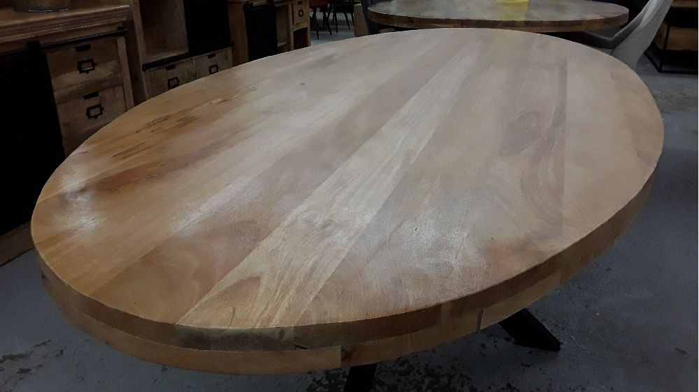 TABLE OVALE 240 MANGUIER MASSIF ET PIED CENTAL METAL