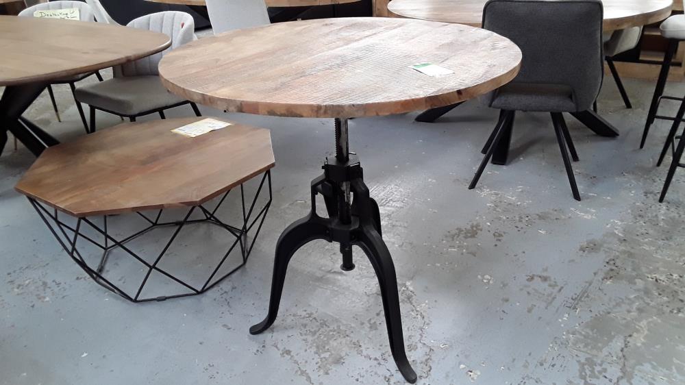 TABLE RONDE MANGUIER SUR PIED CREMAILLERE 90 CM
